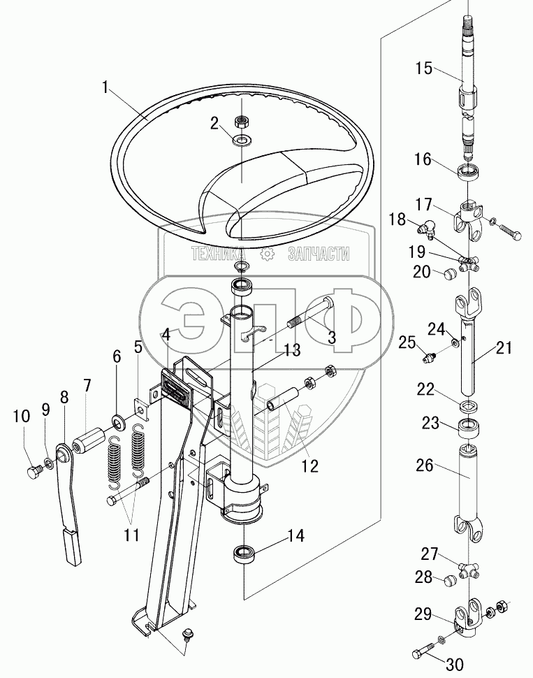 Каталог запасных частей к технике: DongFeng EQ-1074. Управление рулевое