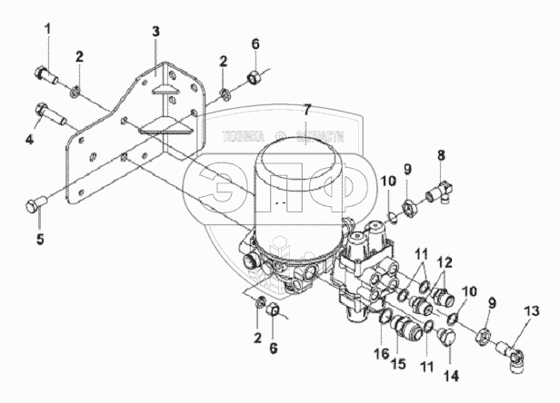 Каталог запасных частей к технике: DongFeng L3251A3 (вар.). Air Drier Subassembly