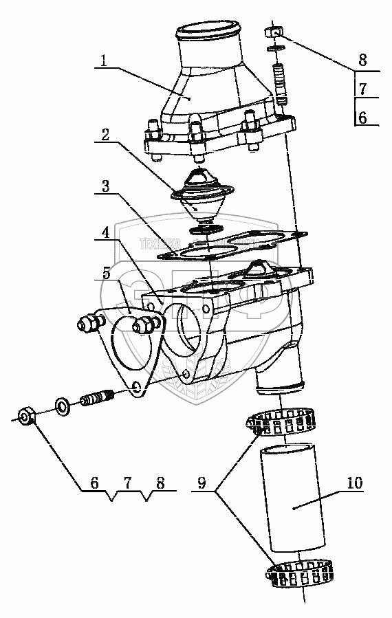 Каталог запасных частей к технике: FAW Altay-3310. М3000-1306000 Сборка термостата
