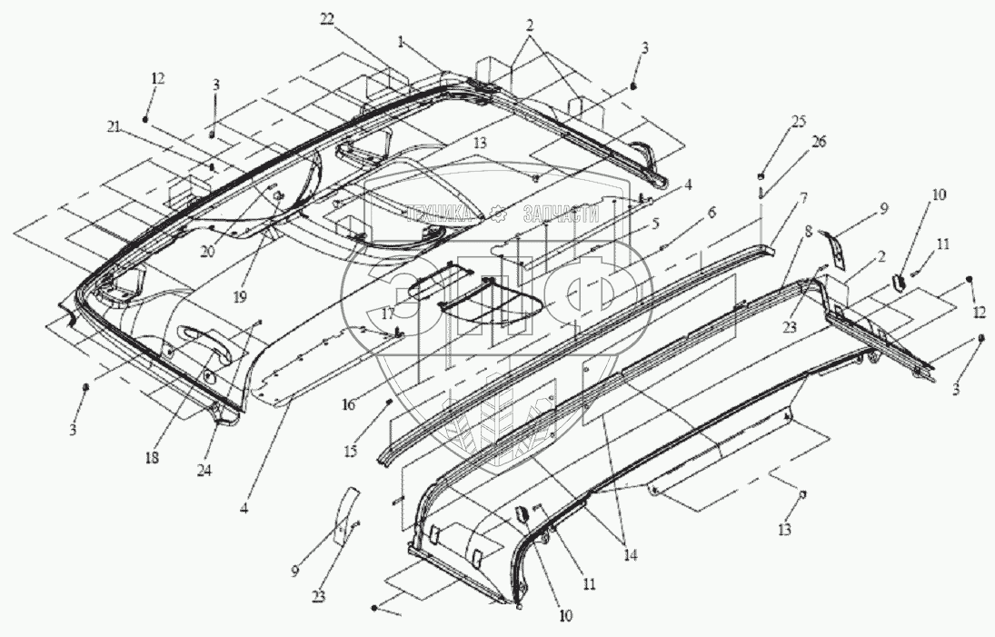 Каталог запасных частей к технике: FAW Altay-3310. ВНУТРЕННЕЕ ПОКРЫТИЕ ОБШИВКИ КРЫШИ