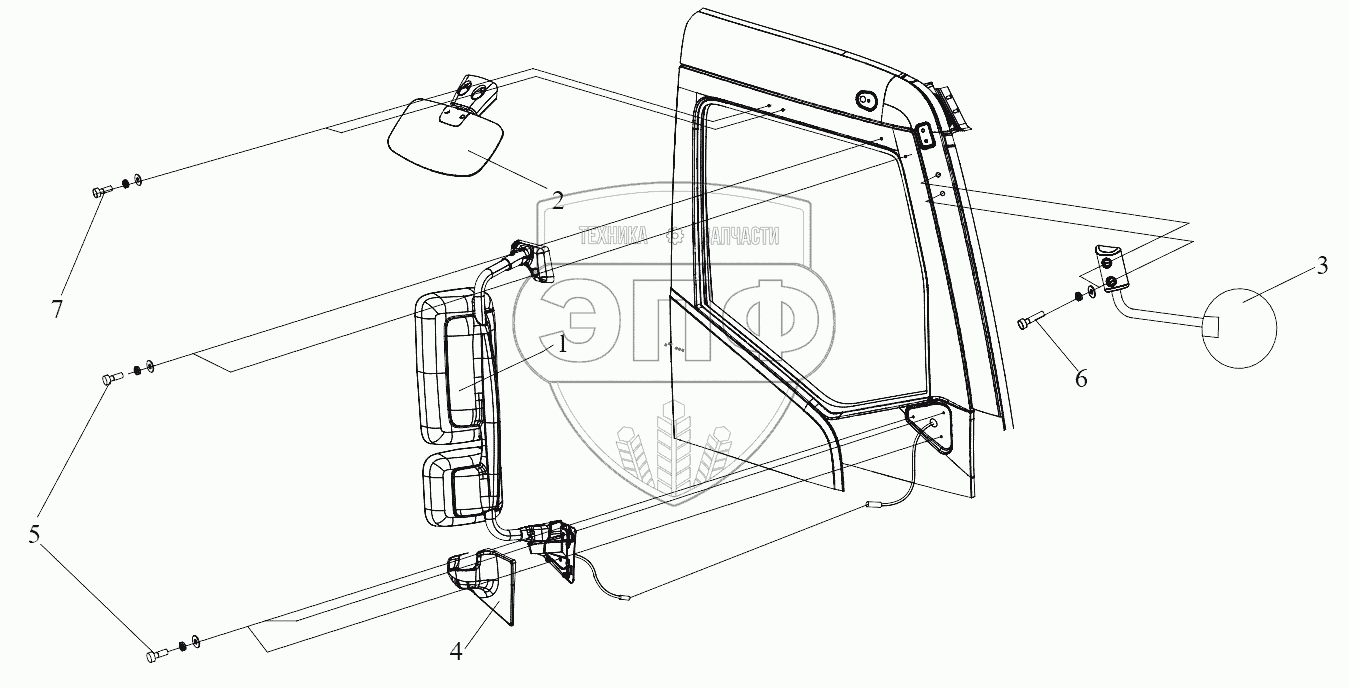 Каталог запасных частей к технике: FAW CA3311. Право-внешнее зеркало заднего вида
