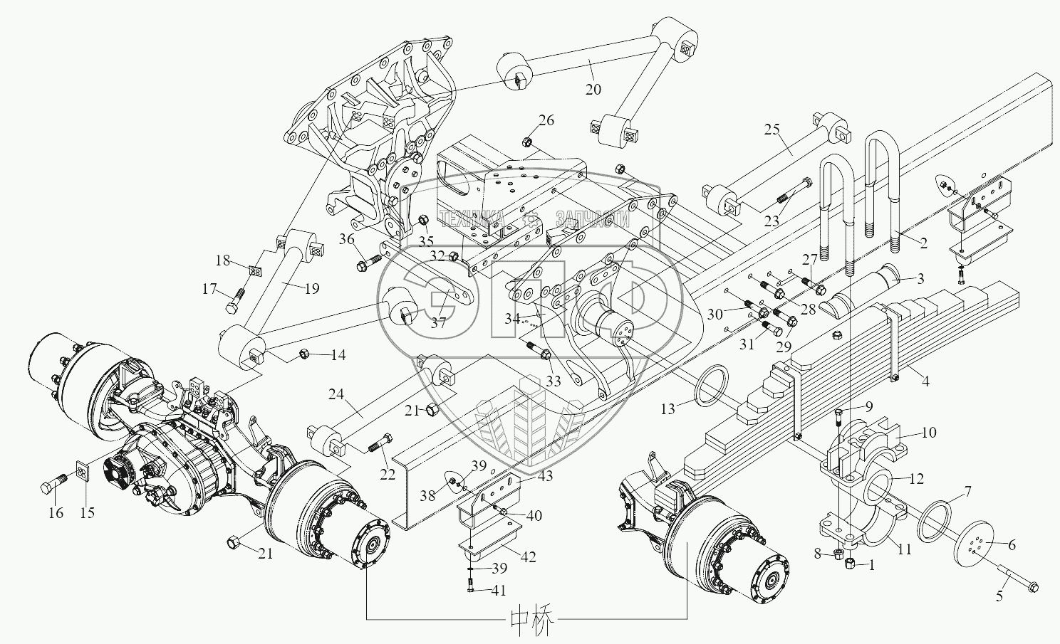 Каталог запасных частей к технике: FAW CA3311. Задняя подвеска