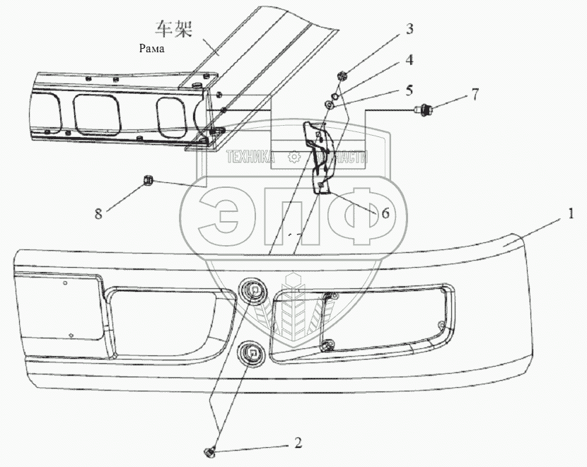 Каталог запасных частей к технике: FAW CA-1083. Передний бампер