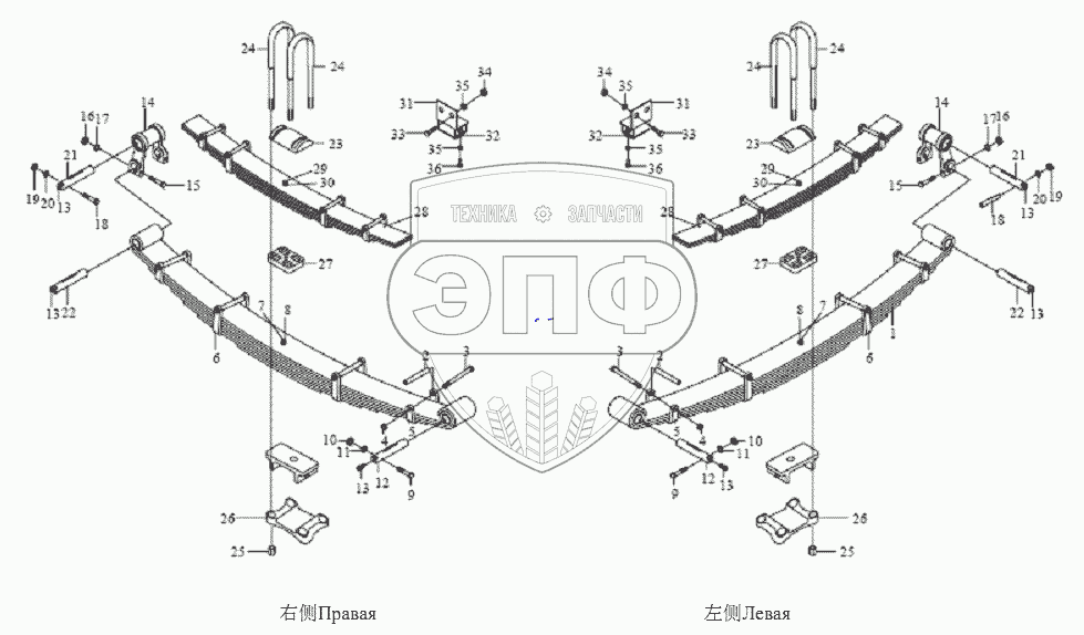 Каталог запасных частей к технике: FAW CA-1083. Задняя подвеска