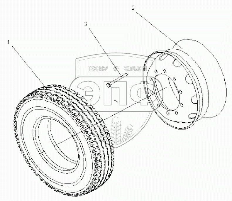 Каталог запасных частей к технике: FAW CA 3250 P66K2T1E5. Колесо с шиной
