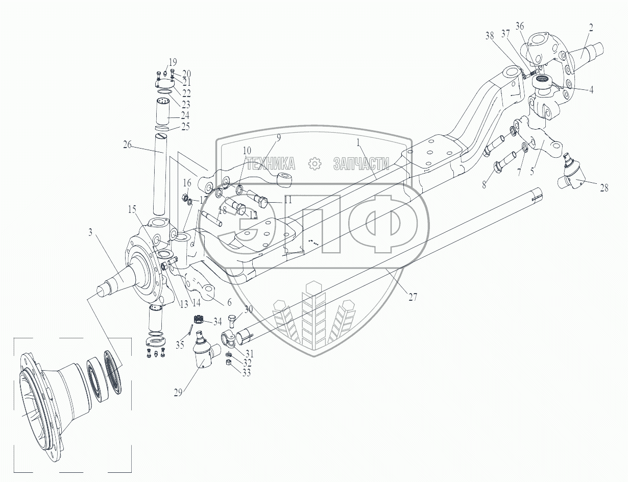 | 1 | 3001011-242/D | Передняя ось | Нет на складе | |
