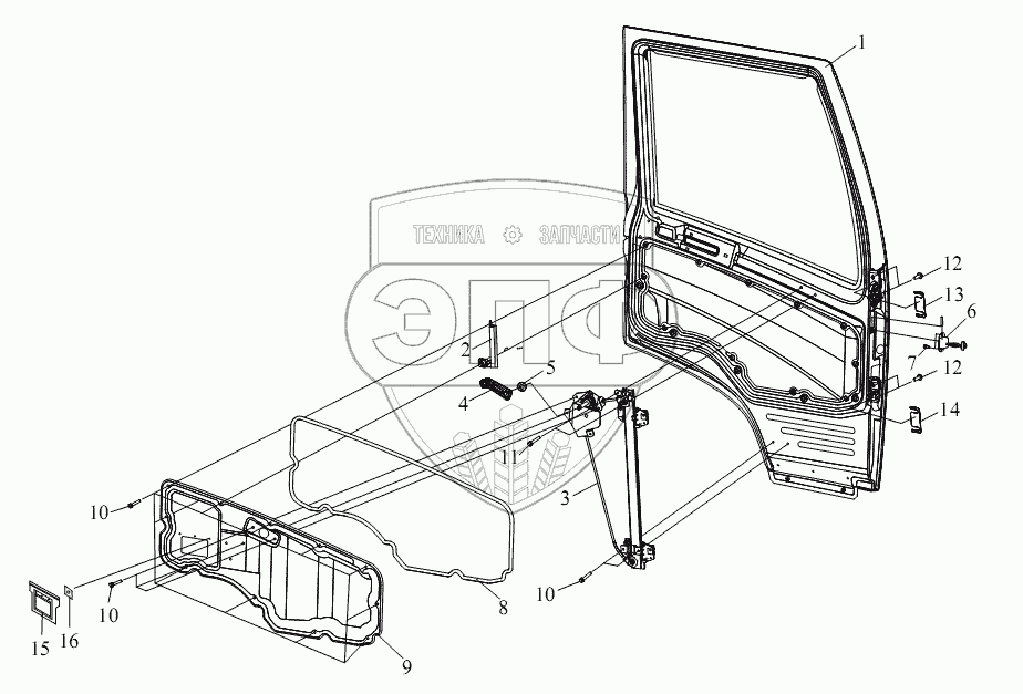 Каталог запасных частей к технике: FAW CA-3252 (P2K2BT1A). Дверь в сборе