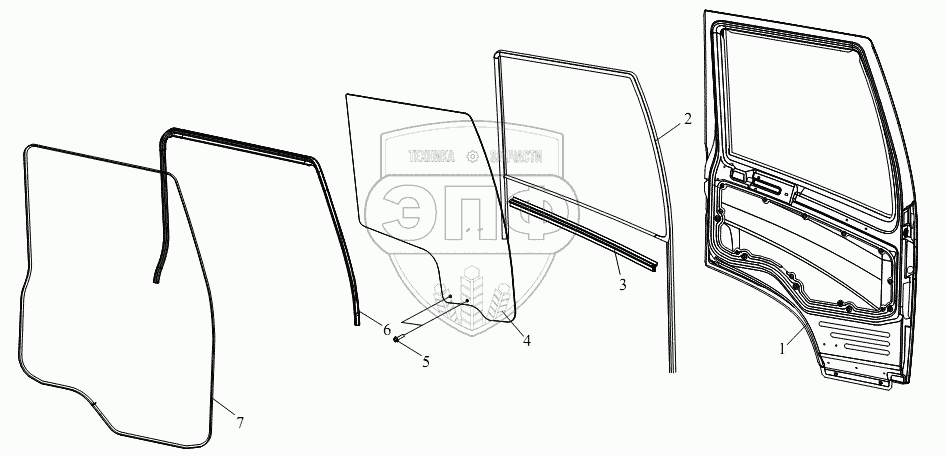 Каталог запасных частей к технике: FAW CA-3252 (P2K2BT1A). Стекло и уплотнитель двери