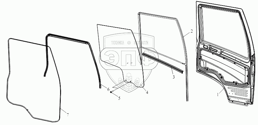 Каталог запасных частей к технике: FAW CA-3252 (P2K2T1A). Стекло и уплотнитель двери