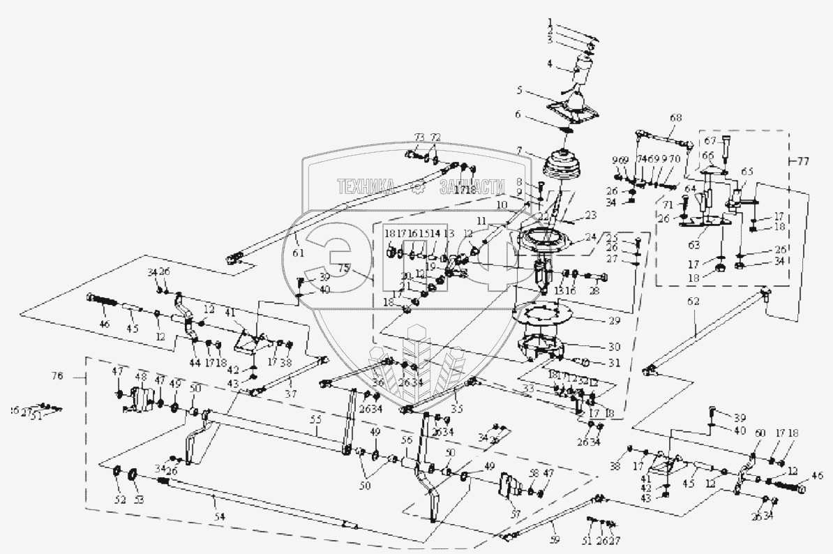 | 75 | 1703010-367 | Рычаг управляющий и опора переключения передач в сборе | Нет на складе | |