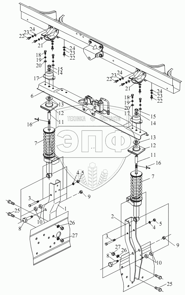 Каталог запасных частей к технике: FAW CA-3252 (P2K2T1A). Задняя подвеска кабины
