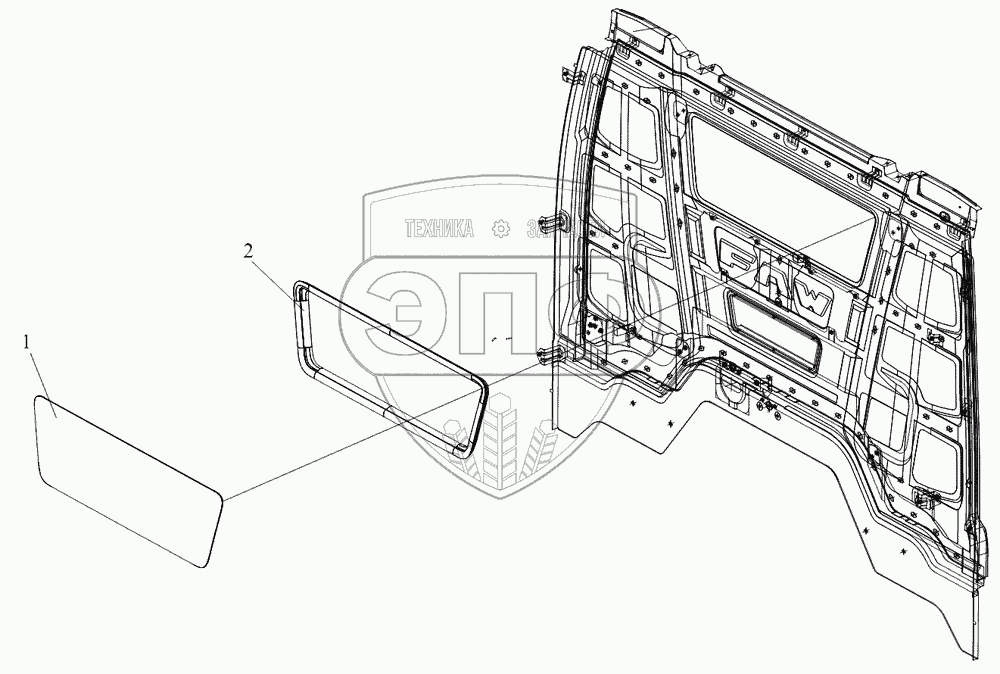 Каталог запасных частей к технике: FAW CA 3310 серии J6. Заднее стекло