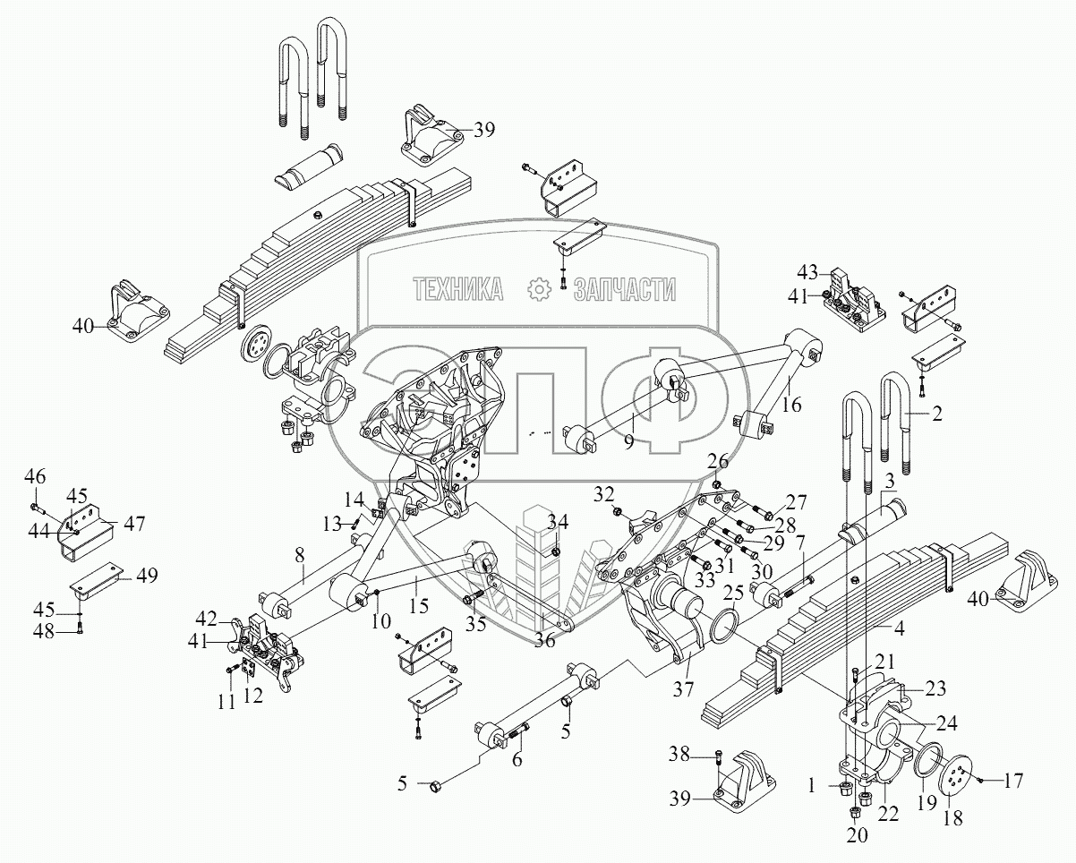 Каталог запасных частей к технике: FAW CA 3310 серии J6. Задняя подвеска