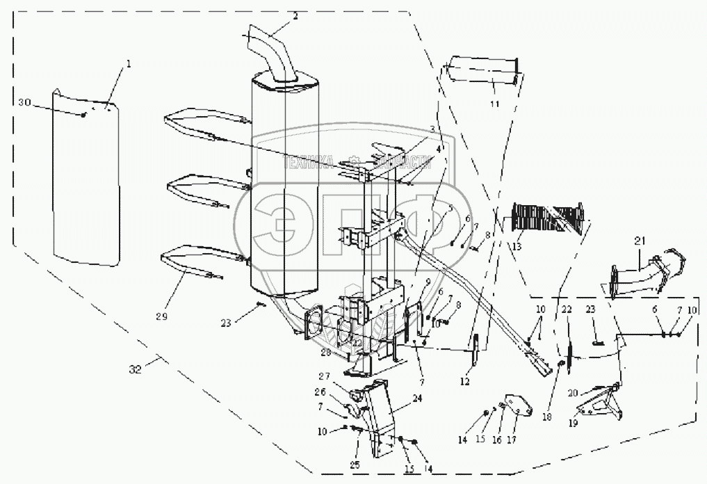 Каталог запасных частей к технике: FAW CA-3312 (P2K2B2T4A2Z). Выпускная система
