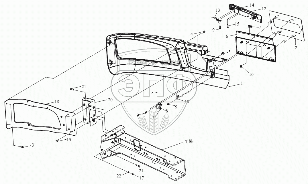 Каталог запасных частей к технике: FAW CA-3312 (P2K2LT4E). Передний бампер