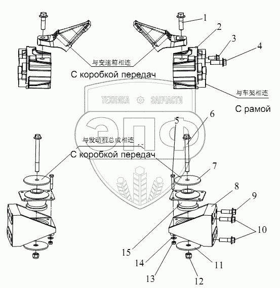 Каталог запасных частей к технике: FAW CA-4180 (P66K22A). Подвеска двигателя