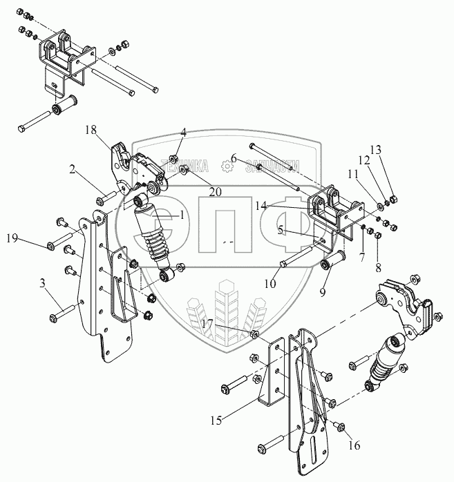 Каталог запасных частей к технике: FAW CA-4180 (P66K22A). Устройство задней подвески кабины