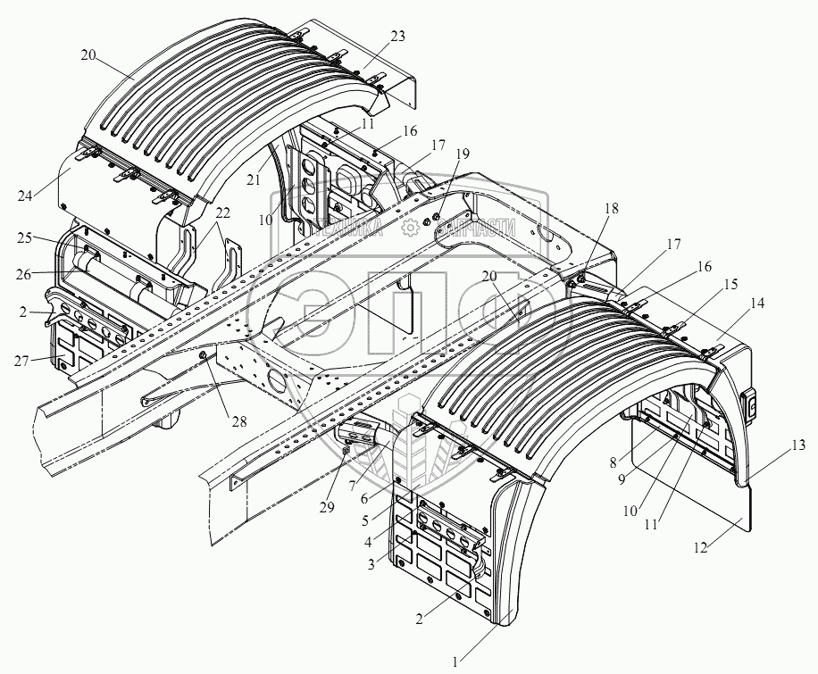 | 5 | 8404013-50А | Броня лево-переднего щитка заднего крыла | Нет на складе | |