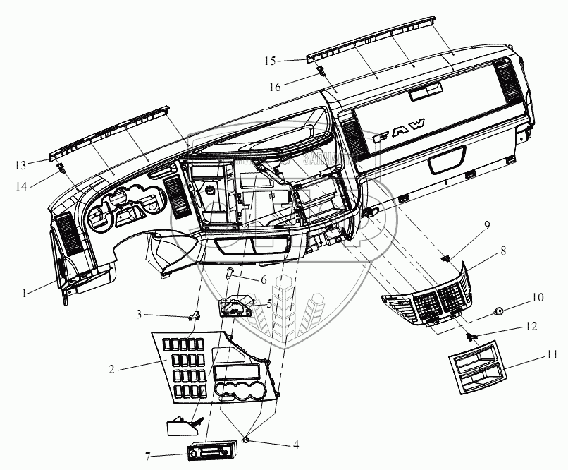 Каталог запасных частей к технике: FAW CA-4180 (P66K2A). Приборная панель