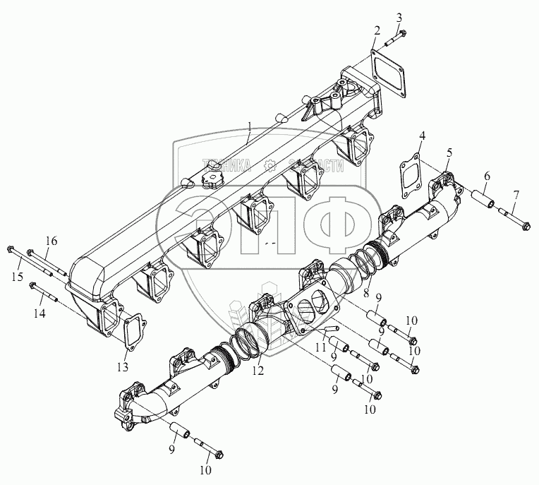 Каталог запасных частей к технике: FAW CA-4250 (P66K22T1A1EX). Впускной, выпускной коллектор