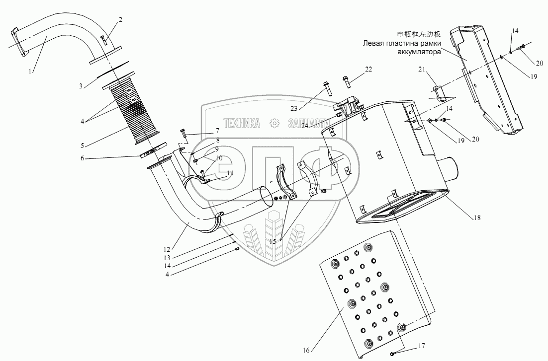 Каталог запасных частей к технике: FAW CA-4250 (P66K22T1A1EX). Выпускная система