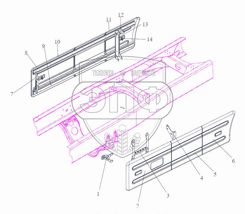 | 13 | 2809060А61В | Боковая защитная продольная балка, соединяющая топливный бак в сборе | Нет на складе |