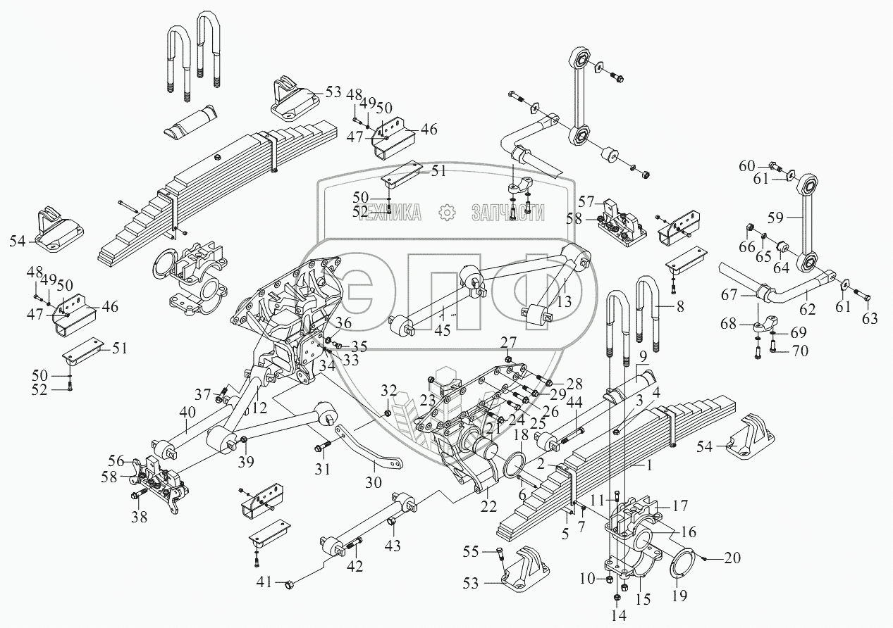 | 53 | 2912445A377 | Опора задней рессоры в сборе - левая сторона среднего моста, правая сторона левого моста | Нет на складе | |