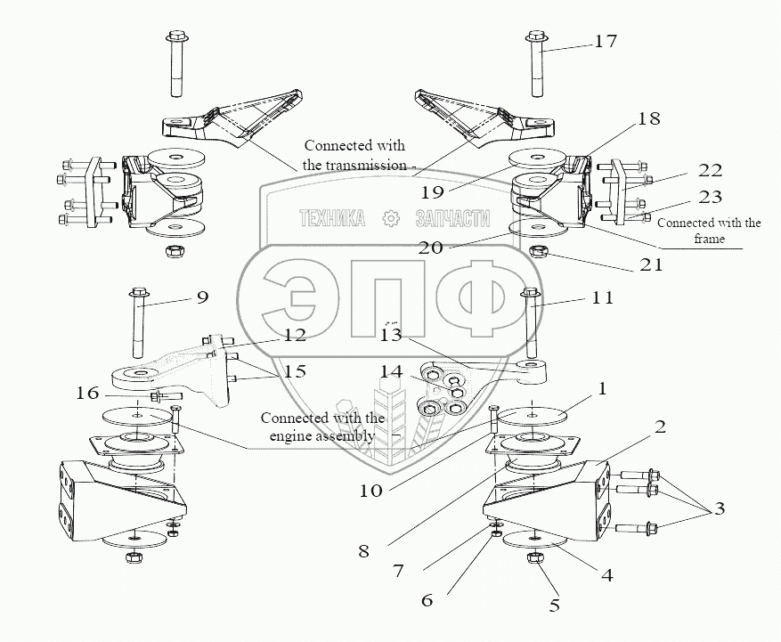 Каталог запасных частей к технике: FAW CA 4250 P66K24T1E. Engine Mounting