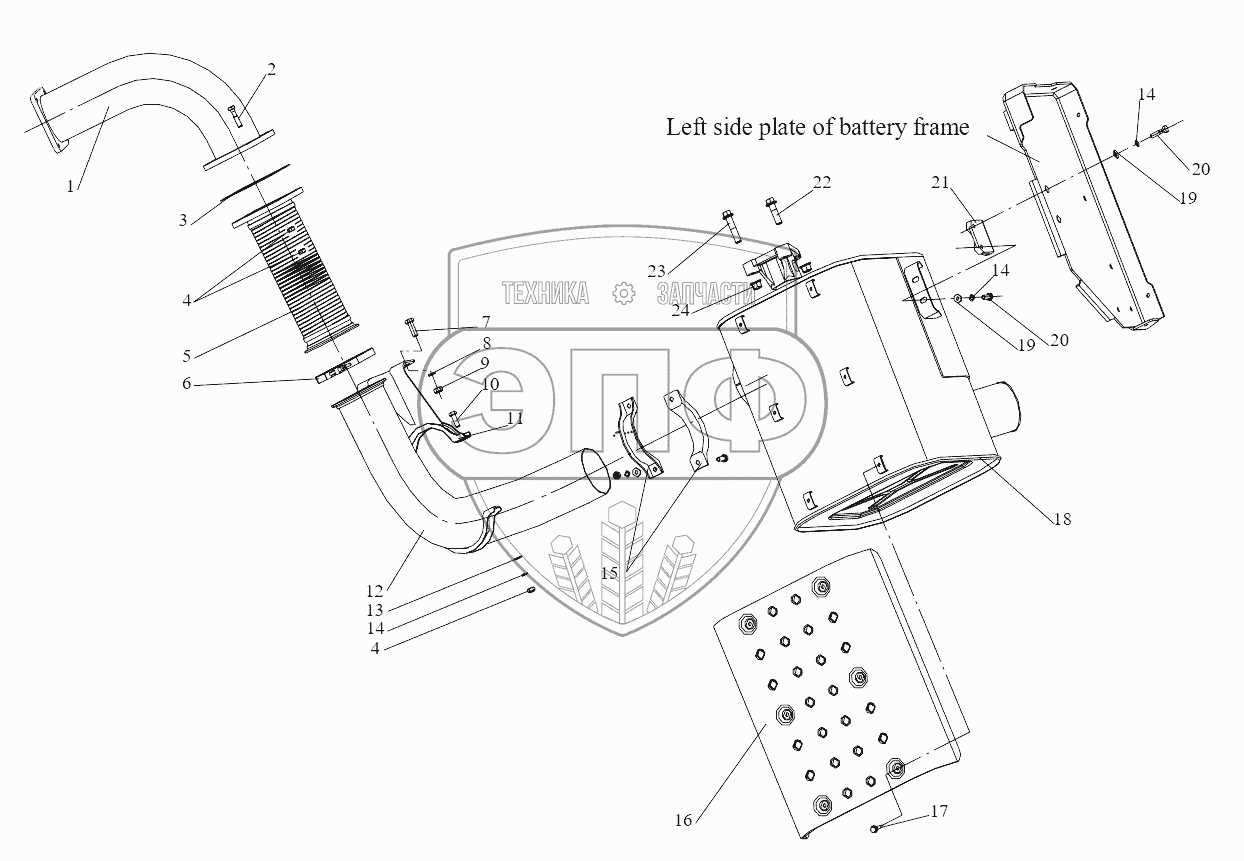 Каталог запасных частей к технике: FAW CA 4250 P66K24T1E. Exhaust System