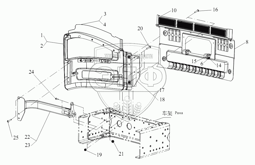 | 18 | 2803280-70U | Правый кронштейн переднего бампера в сборе | Нет на складе | |