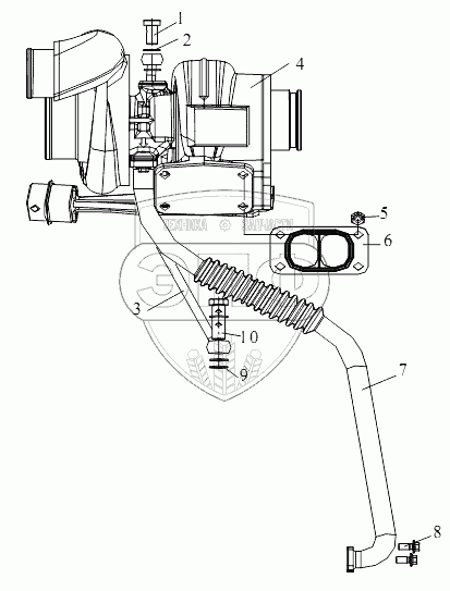 Каталог запасных частей к технике: FAW CA 5250 (GJBP66K2T1E4). Система турбонаддува