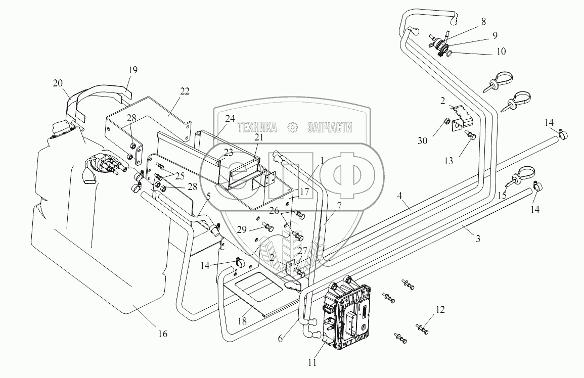 | 17 | 1160105-87V | Кронштейн бака для мочевины в сборе | Нет на складе | |