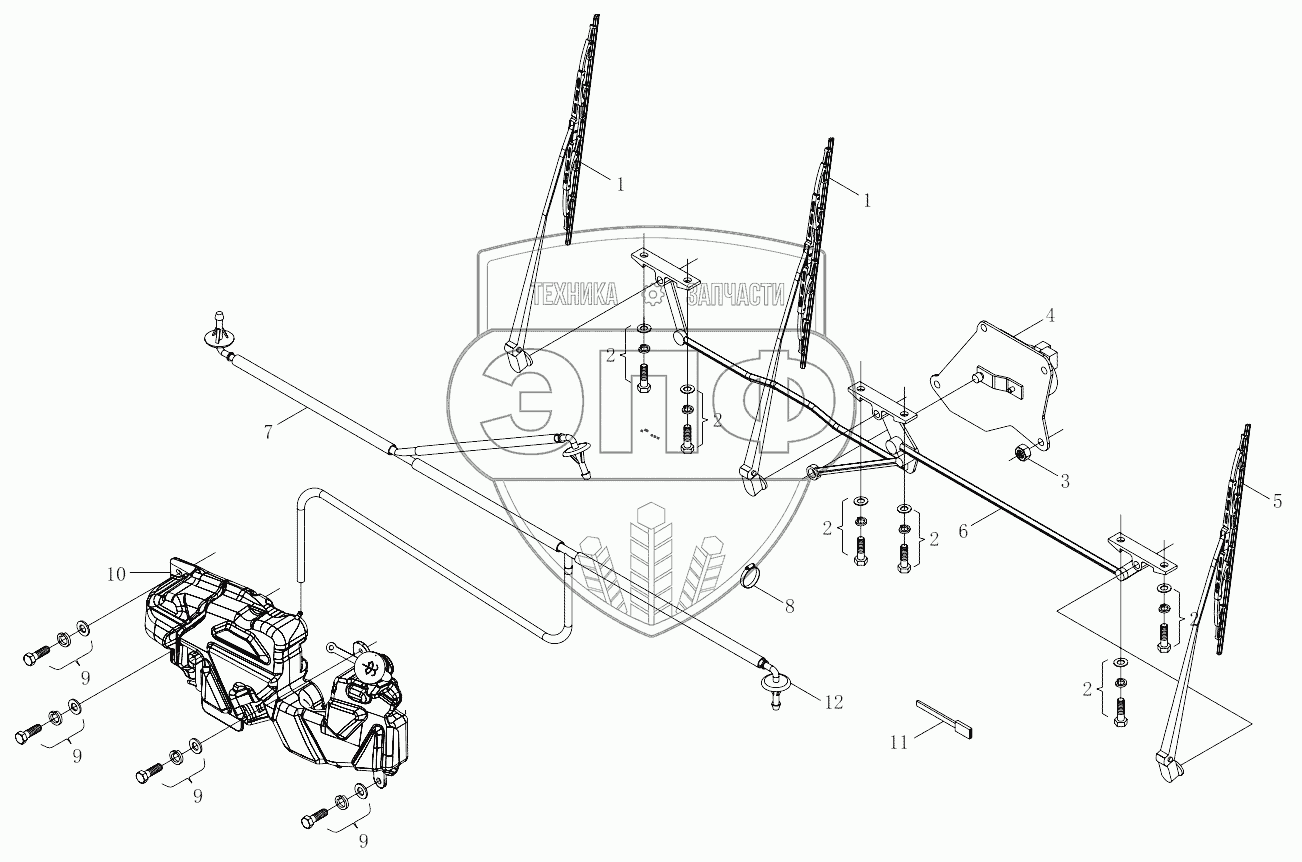 Каталог запасных частей к технике: Foton 3253DLPJE-0RZA01. 1SB2495250701 Wiper and scrubber