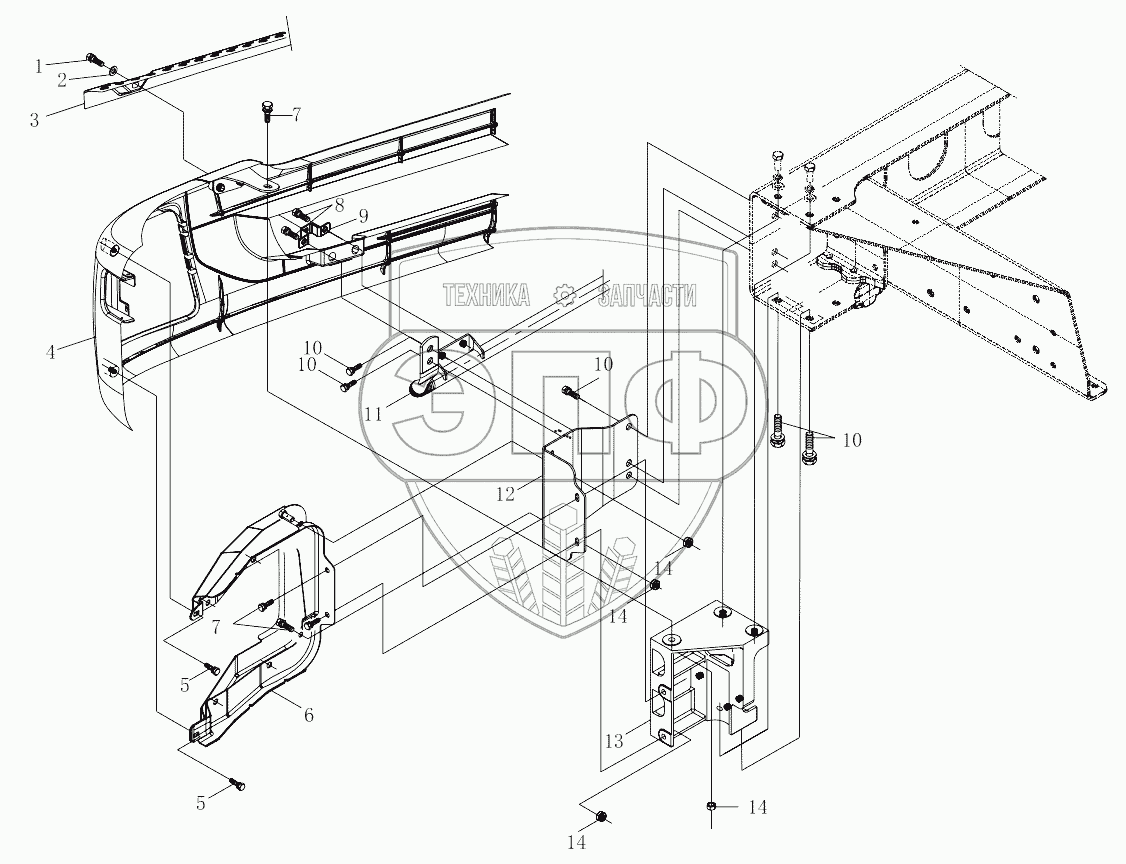 Каталог запасных частей к технике: Foton 3253DLPJE-0RZA01. 1SB2495310212 Bumper module