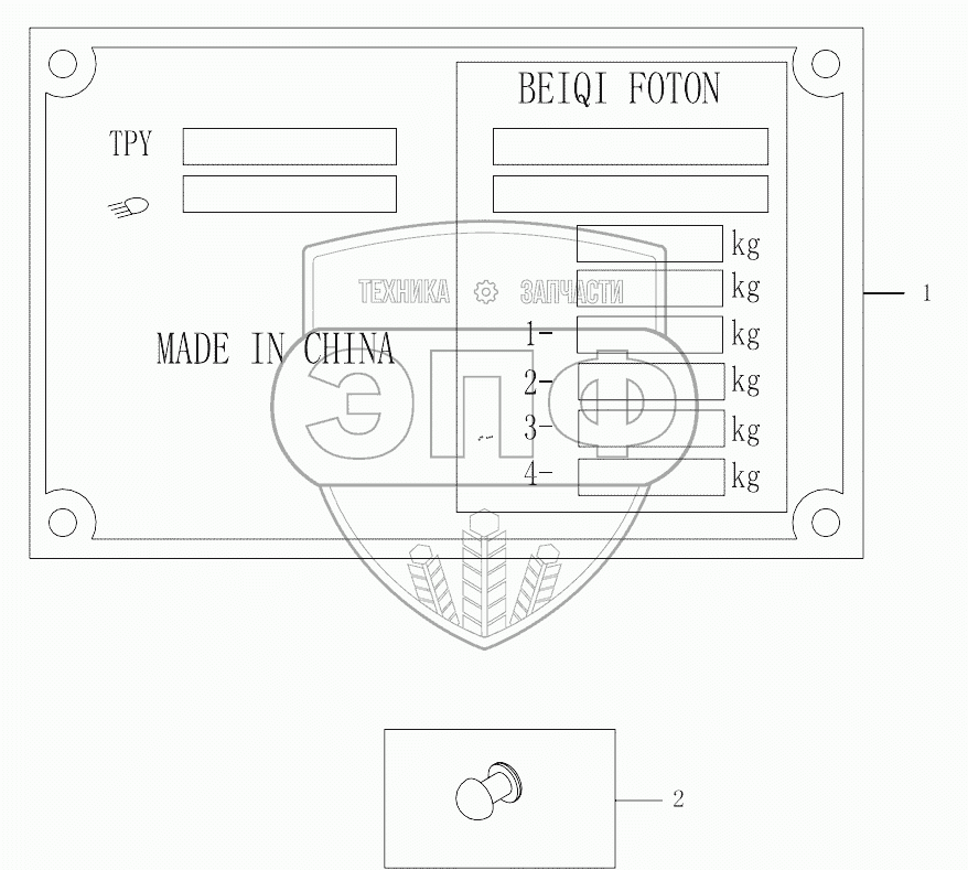 Каталог запасных частей к технике: Foton 4189SLFKA-AEZA01. 1S32533940001 Name plate
