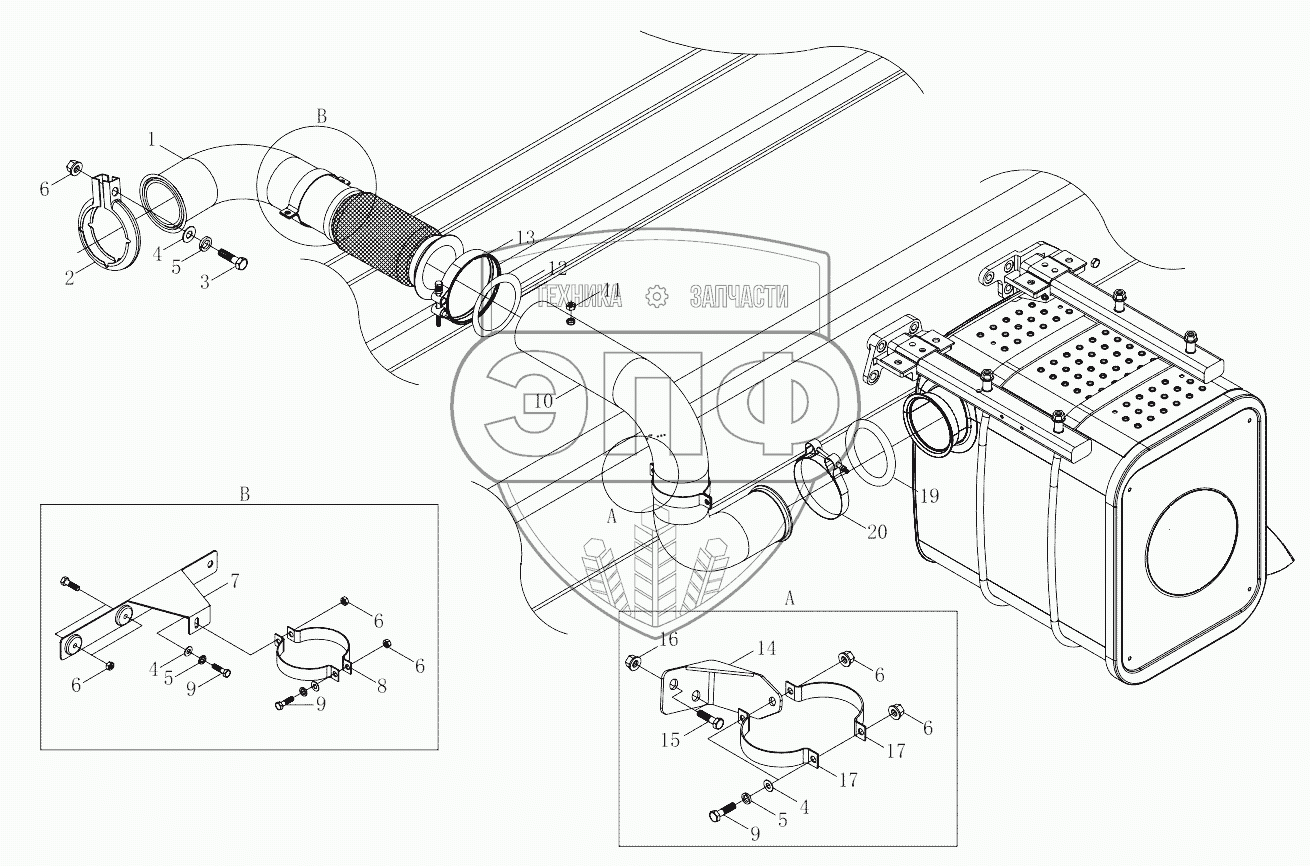 Каталог запасных частей к технике: Foton 4189SLFKA-AEZA01. 1S41891200601 Exhaust system-1