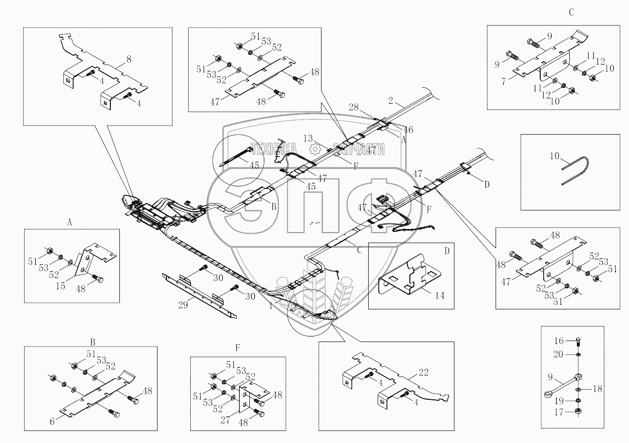 | 47 | H4362052001A0 | Bracket, harness, front axle | Нет на складе | |