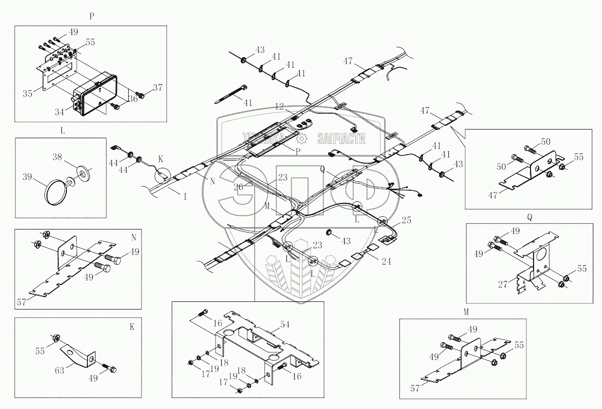 Каталог запасных частей к технике: Foton 4189SLFKA-AEZA01. 1S41893620711 Chassis harness