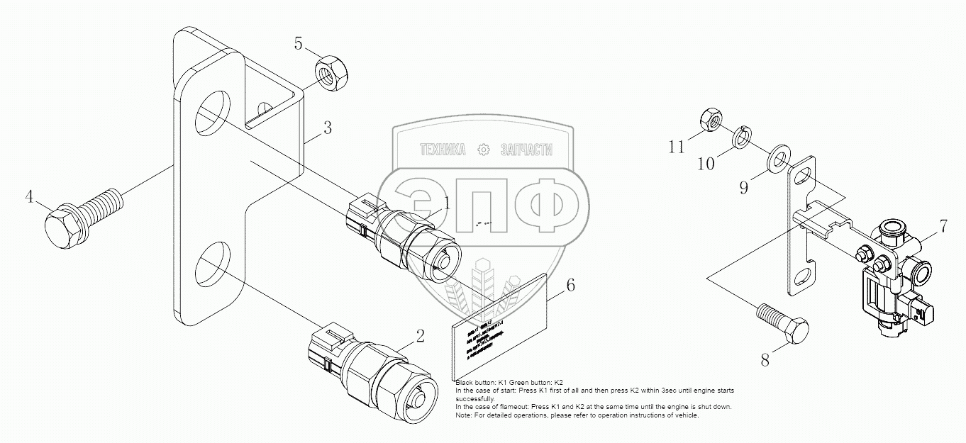 | 3 | H4366070001A0 | Mounting bracket, auxiliary start switch and engine stop switch | Нет на складе | |