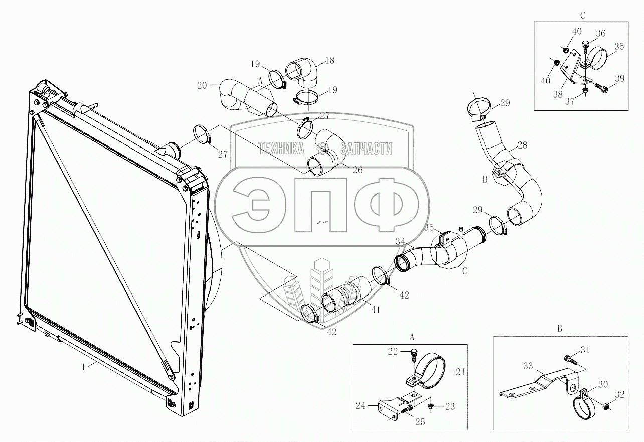 Каталог запасных частей к технике: Foton 4189SLFKA-AEZA01. 1S42591300401 Cooling system