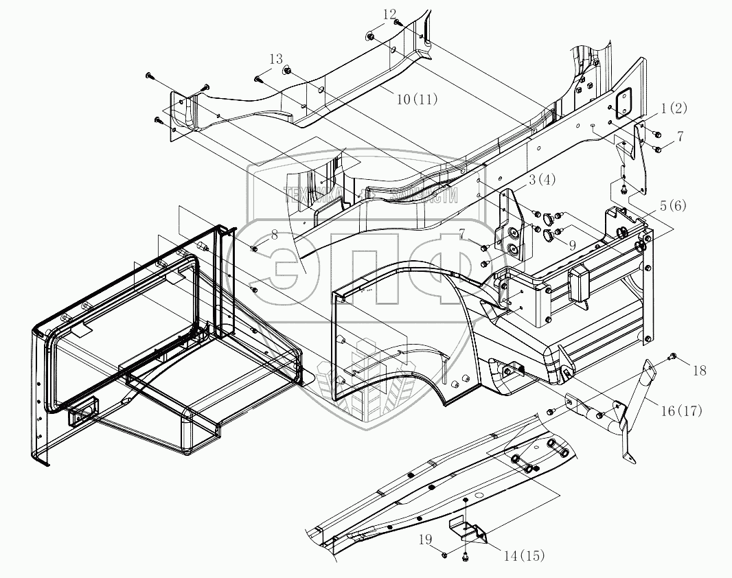 Каталог запасных частей к технике: Foton 4189SLFKA-AEZA01. 1SB2485450401 Footboard, body