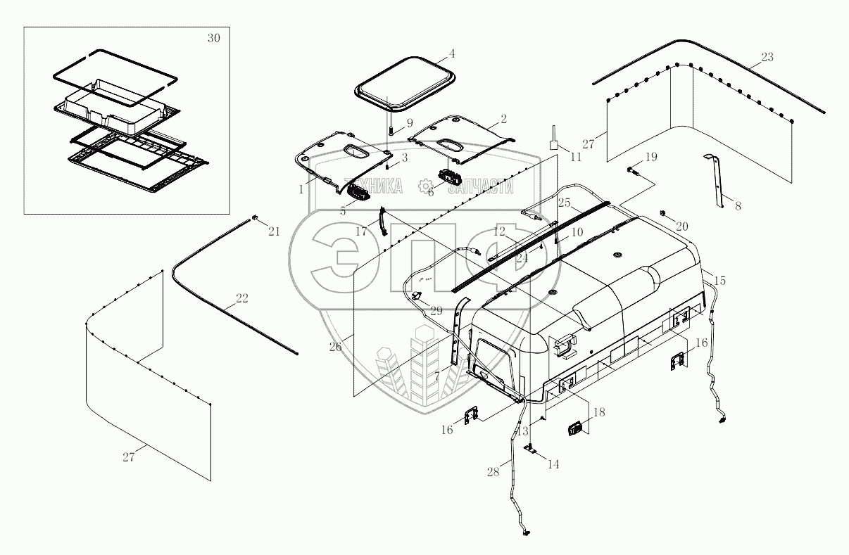 Каталог запасных частей к технике: Foton 4189SLFKA-AEZA01. 1SB2485720001 Roof inner trim