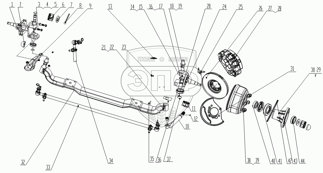 Каталог запасных частей к технике: Foton BJ1039, BJ1049 (Aumark III). Передний вал 1S10493000115