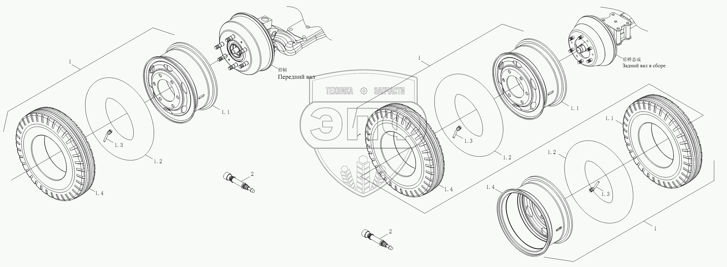 Каталог запасных частей к технике: Foton BJ1051, BJ1061 (Aumark). 1S10493110108 Колеса и шины