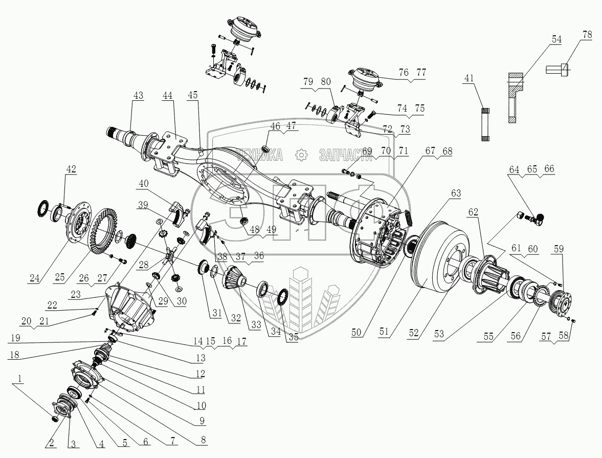 Каталог запасных частей к технике: Foton BJ1051, BJ1061 (Aumark). 1S10612400102 Задний мост