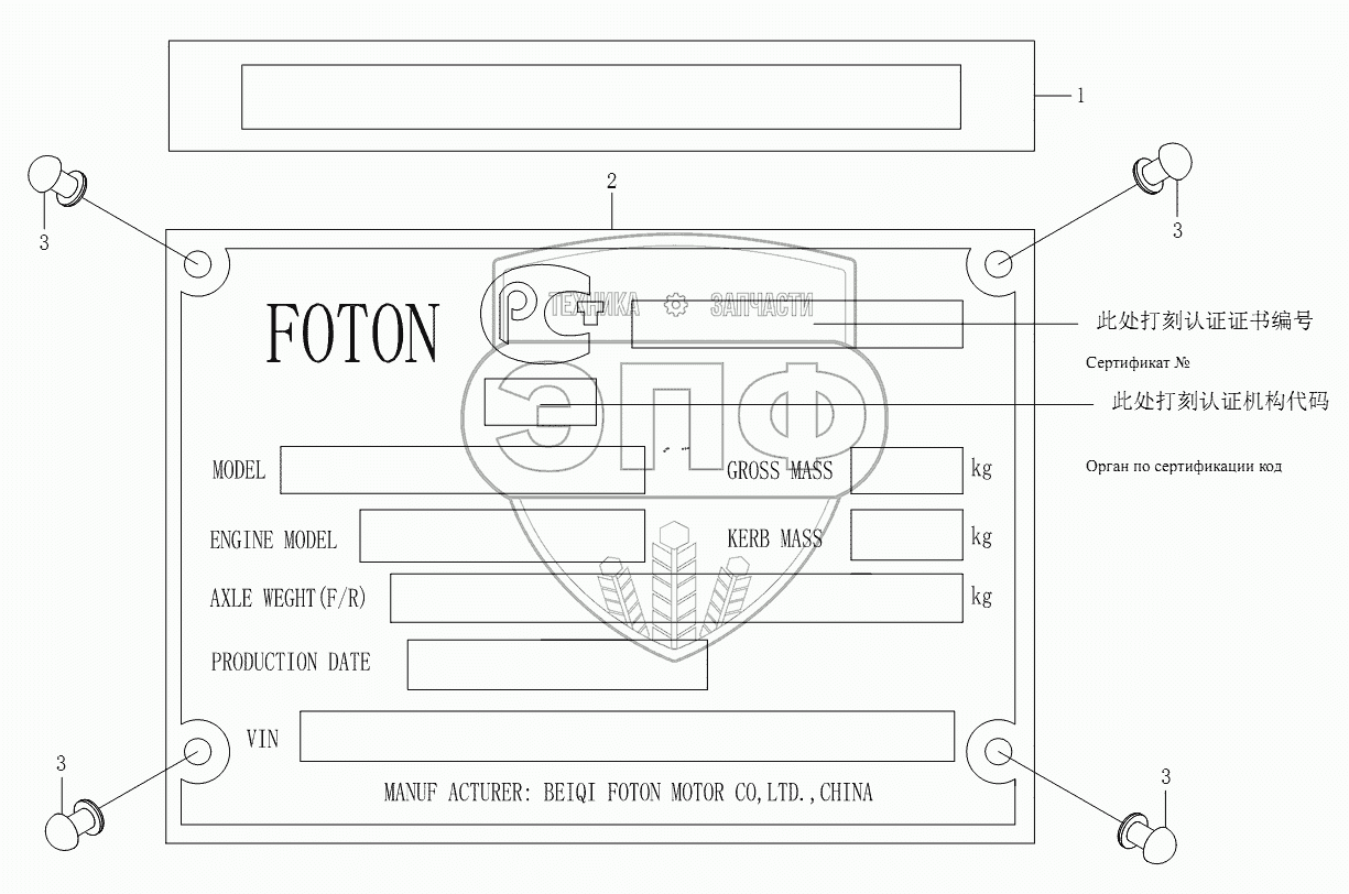 Каталог запасных частей к технике: Foton BJ1051, BJ1061 (Aumark). 1S10693940132 Этикетки