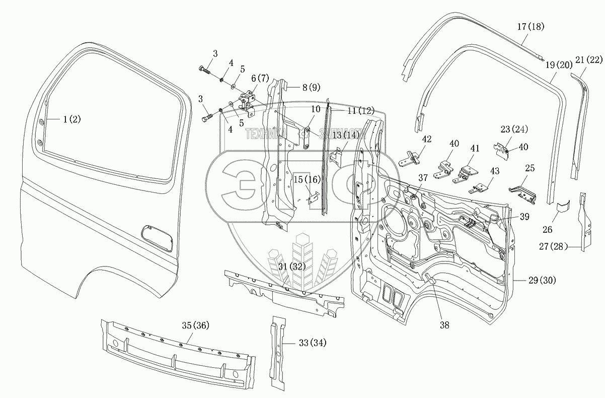 Каталог запасных частей к технике: Foton-BJ1039. Дверь