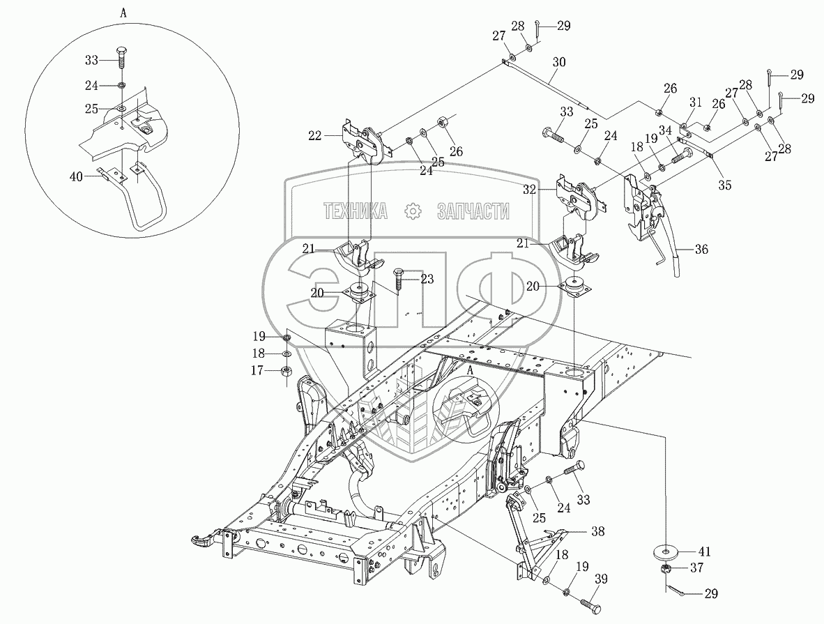 Каталог запасных частей к технике: Foton-BJ1039. Механизм опрокидывания и фиксации кабины