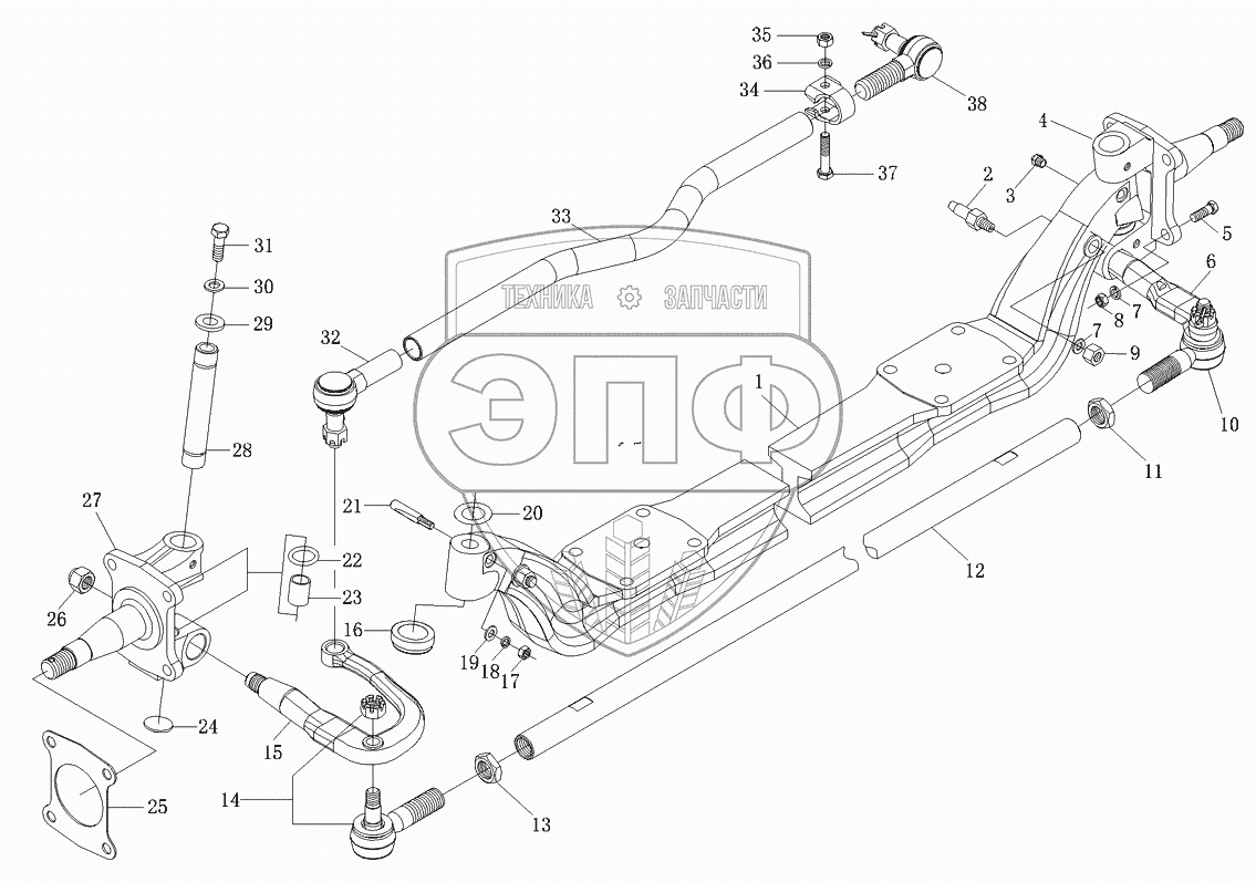 Каталог запасных частей к технике: Foton-BJ1039. Ось передняя