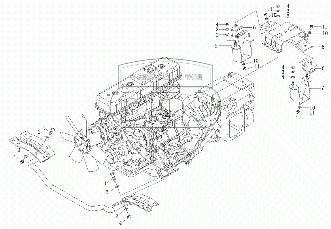 Каталог запасных частей к технике: Foton-BJ1039. Подвеска силового агрегата